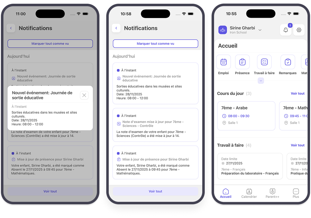 Never miss an important update. Receive instant notifications about your child's attendance, grades, assignments, and school announcements.