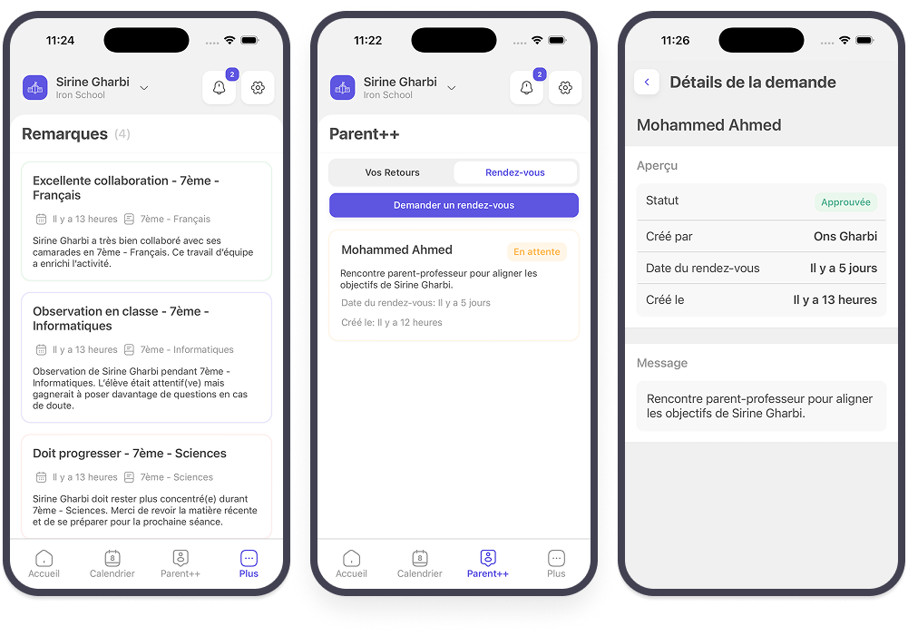Our mobile app provides parents with comprehensive tools to stay engaged with their child's education journey.